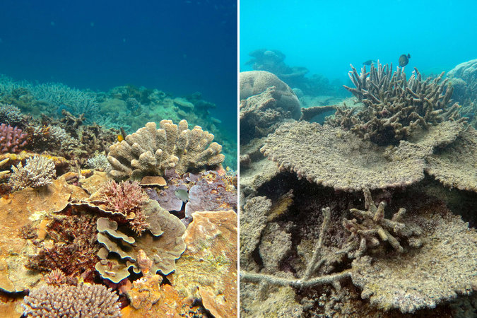 Scomparsi due terzi dei coralli: uno studio, pubblicato su Nature, spiega che lo sbiancamento del 90% dei coralli e la morte del più del 20% sia dovuto all’aumento delle temperature degli oceani; una conseguenza del cambiamento climatico. Le immagini shock a cura dell’ARC Centre of Excellence for Coral Reef Studies
